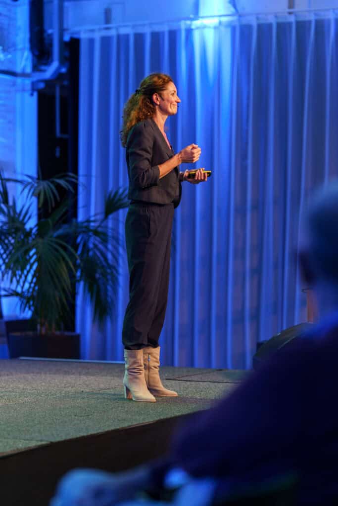 Ze bewijst steeds wat ze belooft. Ze gebruikt wat er in de zaal gebeurt in haar keynote